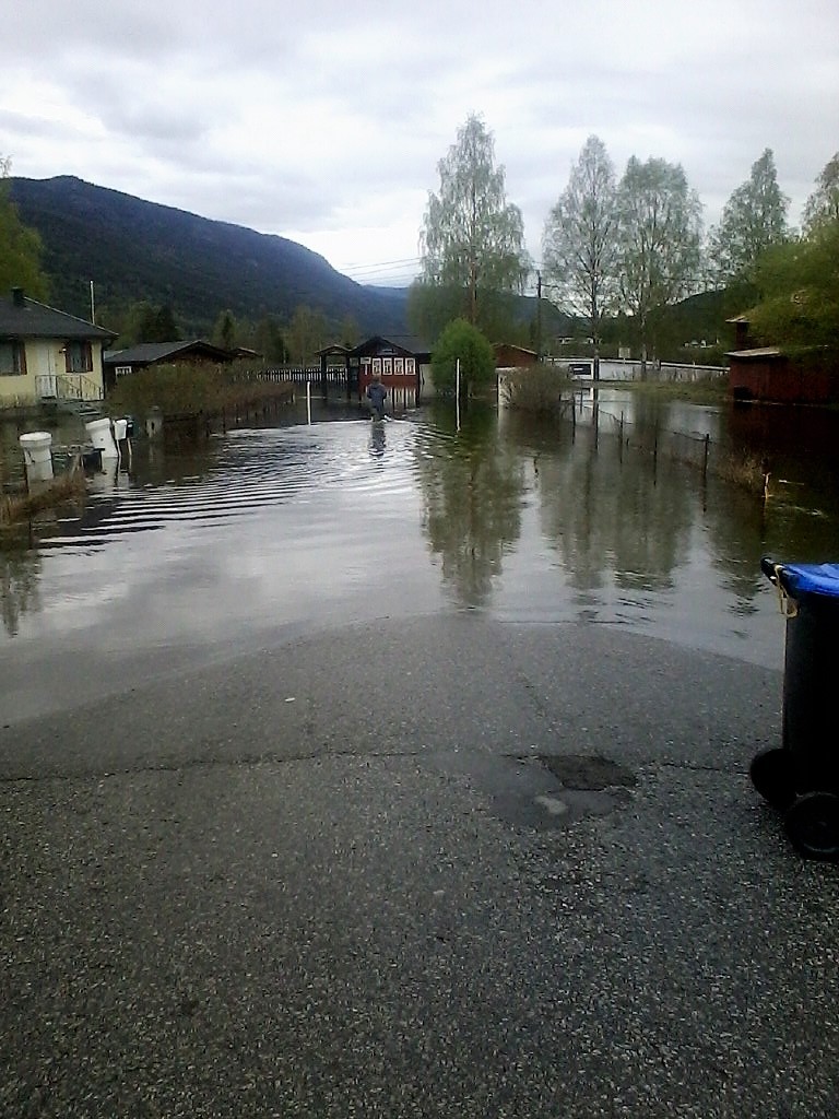 Det er venta av vasstanden vil gå attende seint ettermiddag fredag. Kor stort skadeomfanget vil bli er per no vanskeleg å antyde, men nokre kjellarar er fylt opp med vatn og området ved "ElveShell" er stengt.